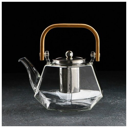 Чайник стеклянный заварочный с бамбуковой крышкой и металлическим ситом «Октогон», 1,2 л