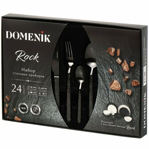 Набор столовых приборов нерж сталь, 24 пр, Rock Black, Domenik, DMC035