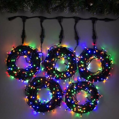 Luazon Lighting Гирлянда «Клип-лайт» 5 нитей по 20 м, IP44, УМС, тёмная нить, 665 LED, свечение мульти, 24 В