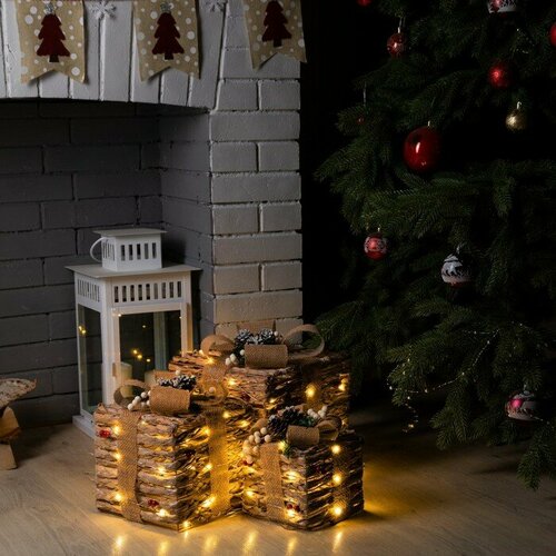 Светодиодная фигура «Эко-подарки» 15, 20, 25 см, текстиль, металл, батарейки ААх2 (не в комплекте), свечение тёплое белое