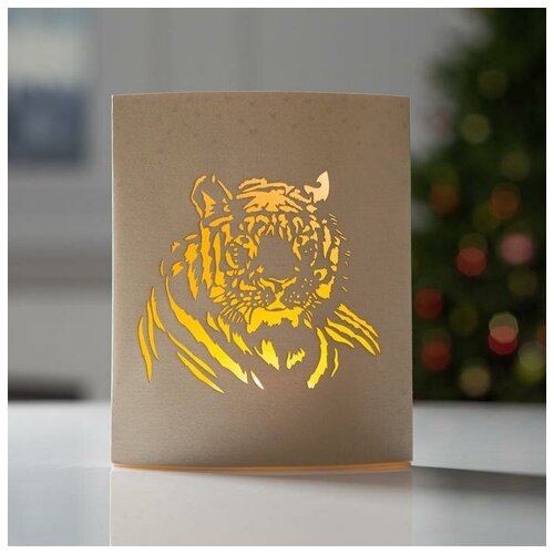 Luazon Lighting Светодиодная фигура «Тигр» 13 × 16 × 5 см, картон, батарейка ААх2 (не в комплекте), свечение тёплое белое