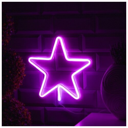 Неоновая вывеска «Звезда» 28 × 28 см, батарейки ААх3 (не в комплекте), USB, свечение розовое