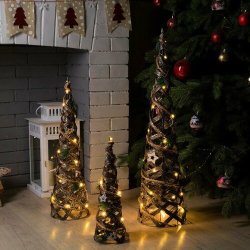 Светодиодная фигура «Конусы плетёные» 40, 60, 80 см, текстиль, металл, батарейки ААх2 (не в комплекте), свечение тёплое белое