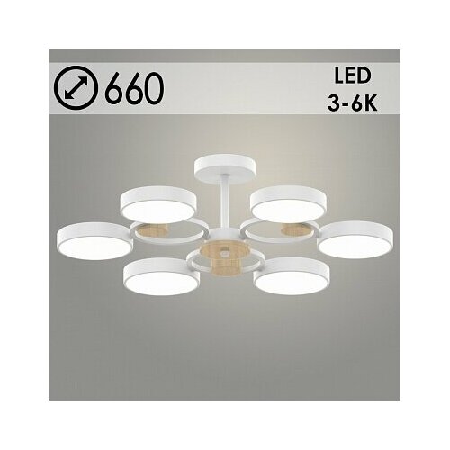 Люстра XI3212/6 WT+WOOD/дерево 108W LED 3000-6000K d660 h180, HN22