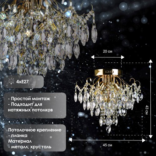 Люстра хрустальная Росток XE4040/4 FGD золото/хрусталь 4х60W E14 d450 h430