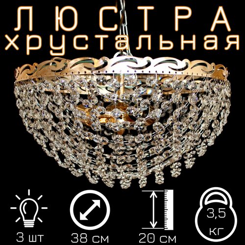 Хрустальная люстра "Анжелика Купол", диаметр 40 см, 3 лампы, Е27, хрусталь, Гусь Хрустальный