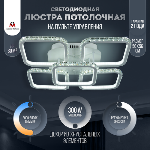 Люстра потолочная светодиодная Maestro De Luce с пультом, 300W, 56 см