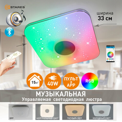 Управляемая светодиодная музыкальная люстра a-play RGB 40W Квадрат (муз. колонка + пульт)