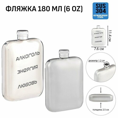 Фляжка для алкоголя "Энергия", нержавеющая сталь, подарочная, 180 мл, 6 oz