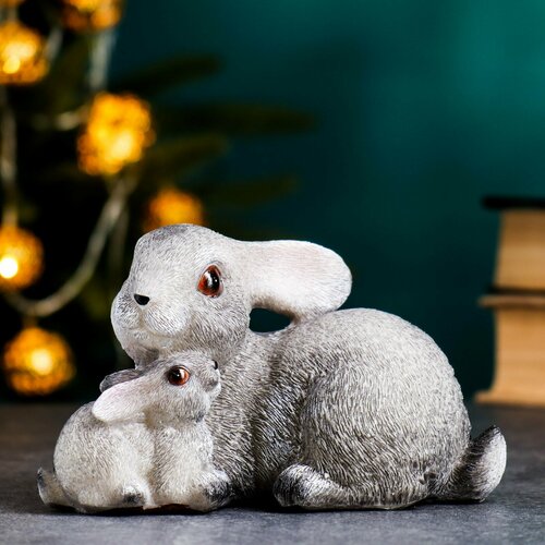 Копилка "Заяц с зайчонком" серый, 16х8х8см