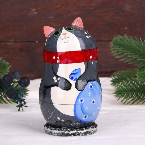 Матрёшка «Котик» с ёлочными украшениями
