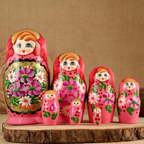 Матрёшка «Золотые цветы», розовое платье, 7 кукольная, 15 см