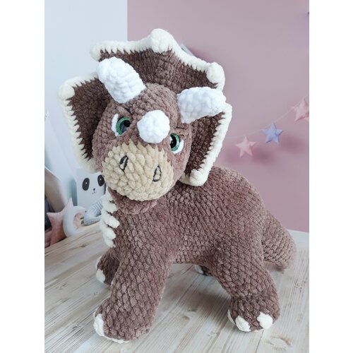 Вязаный плюшевый Динозавр Трицератопс 25см