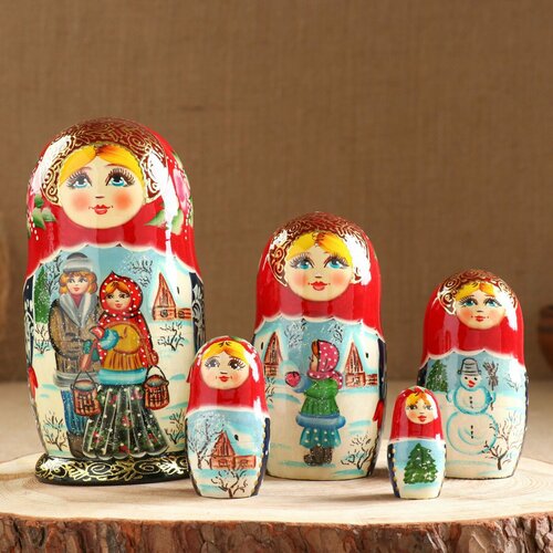 Цены на Матрешка 5-ти кукольная "Нелли" узоры, 15 см, ручная роспись в г. Пермь