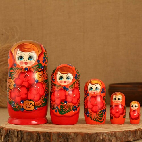 Матрешка деревянная Хохлома, 5 мест, 18см / Развивающие детские игрушки