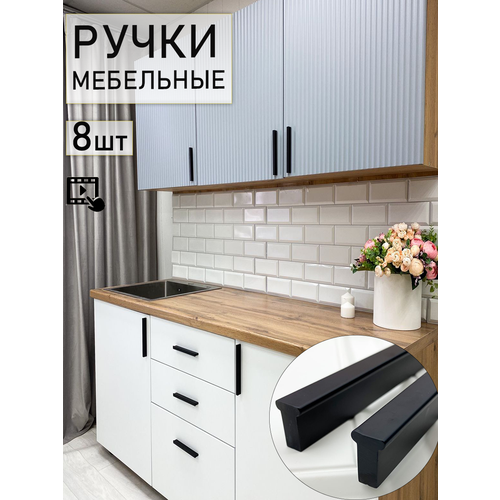 Мебельная ручка дизайнерская, для шкафа, для кухни, черная №161-128 (160) мм - 8 шт