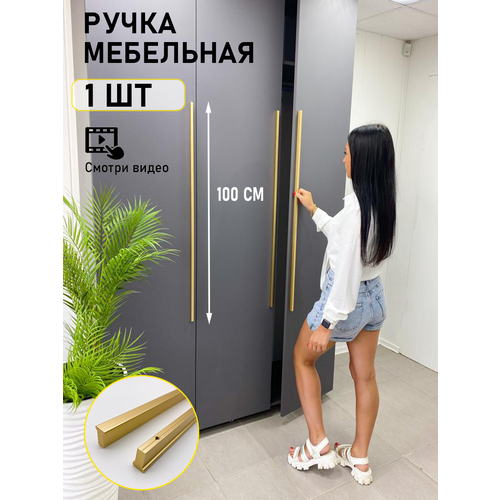 Мебельная ручка длинная метровая, дизайнерская, для шкафа, для кухни, матовое золото 1 метр №161-960 (1000) мм - 1 шт