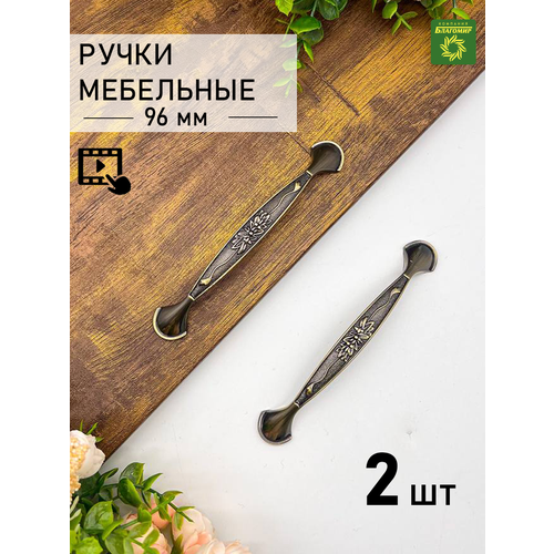 Ручка мебельная дизайнерская для шкафа, античная бронза (114 мм) 2 шт.