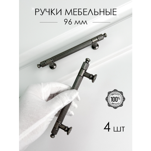 Мебельная ручка дизайнерская для мебели, шкафа (96мм) античный никель, 4шт