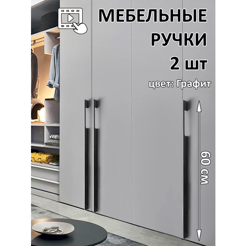 Мебельная ручка дизайнерская, универсальная для кухни, для шкафа, для комода №160-576 (600) мм графит (2 шт)