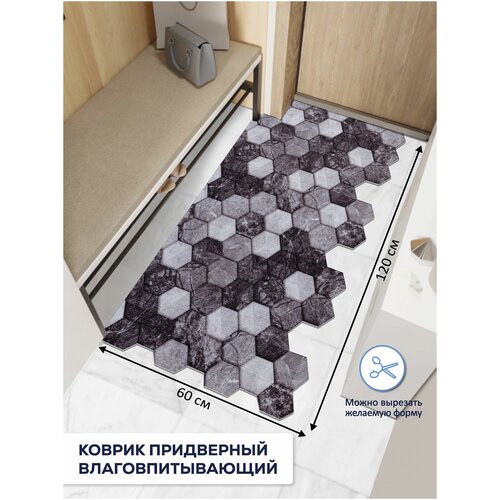 Коврик вырезной шахинтекс придверный влаговпитывающий 60х120 Соты Мрамор чёрно-серый