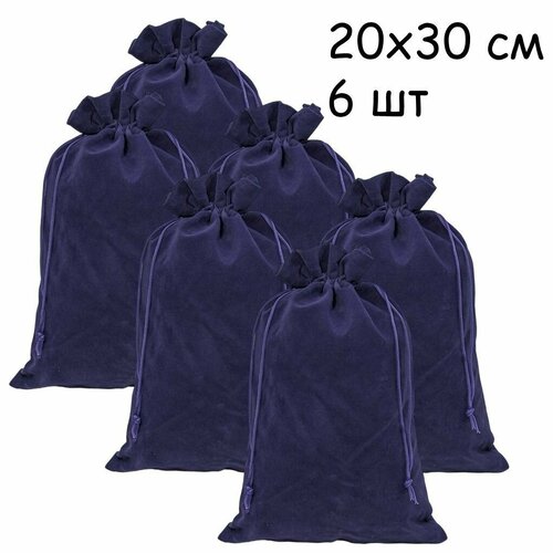 Мешочек подарочный бархатный синий 20х30 см для подарков, для хранения, комплект 6 шт.