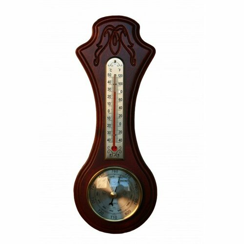 серебристый, коричневый, серебристыйНазначение Домашняя аналоговая метеостанция М-78 (декор) позволит составить собственный прогноз погоды и позаботиться о поддержании правильного микроклимата в жилом или техническом помещении в квартире, на даче, в офисе или на складе. Измеряются 3 показателя: атмосферное давление (барометр), влажность воздуха (гигрометр) и температуру (термометр). Ключевые особенности Метеостанция М-78 компании Бриг+ это практичный подарок себе, родным или друзьям, стильный и функциональный декор дома или офиса. В изящном деревянном корпусе три прибора: Высокочувствительный анероидный барометр с первичной калибровкой и двойной разметкой шкалы: в гектопаскалях (940...1060 гПа) и миллиметрах ртутного столба (710...800 мм рт. ст.). Барометр-анероид полностью безопасен и не требует каких-либо источников питания. Золотая стрелка показывает эталонное давление, чёрная текущее. Интервалы давления, соответствующие той или иной погоде, отмечены на закрытом циферблате соответствующими иконками. Спиртовой термометр с двойной разметкой шк