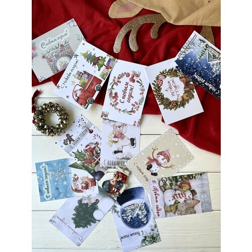 Набор Новогодних открытокВ наборе 12 оригинальных открыток на украшение подарков ручной работы и добрых пожеланий!Формат 10*15На об...