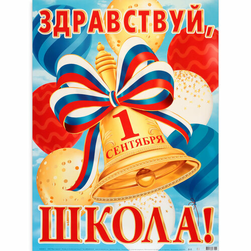 Плакат "Здравствуй, школа!" колокольчик, 60 х 44,5 см