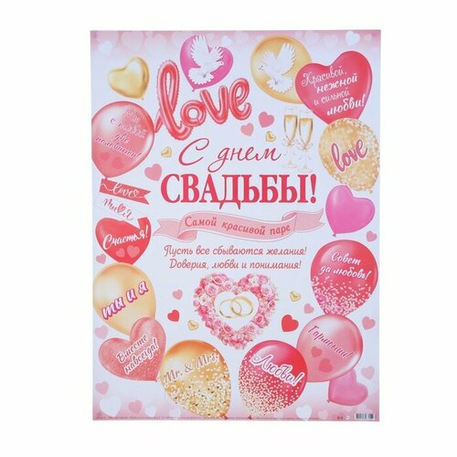 Плакат "С Днём Свадьбы! Самой красивой паре!" шары, 44,5 х 60 см