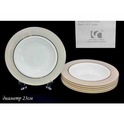 Набор глубоких тарелок 6шт костяной фарфор, 23см Lenardi, Золотая
