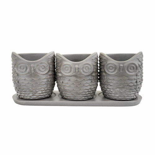 Набор горшков для суккулентов Вещицы 0, 22 л / Комплект из 3 шт. с поддоном / Для декора дома и офиса / Цвет:.