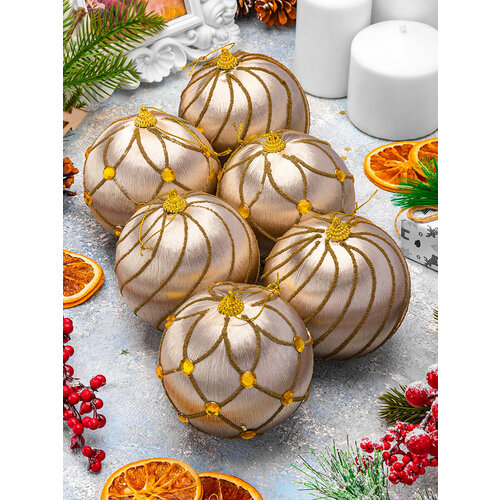 Набор 6 новогодних шаров 9,5х9,5 см Elan Gallery Полоски, шампань