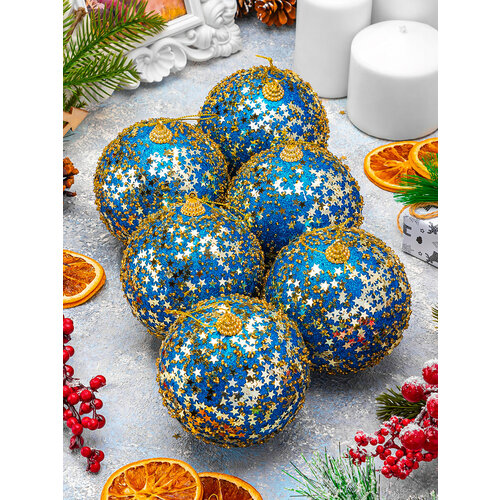 Набор 6 новогодних шаров 8х8 см Elan Gallery Звезды, синий