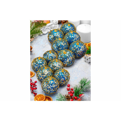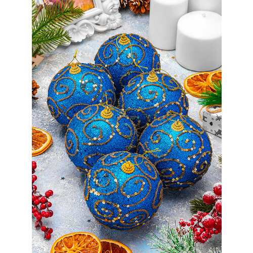 Набор 6 новогодних шаров 9,5х9,5 см Elan Gallery Золото на синем, синий