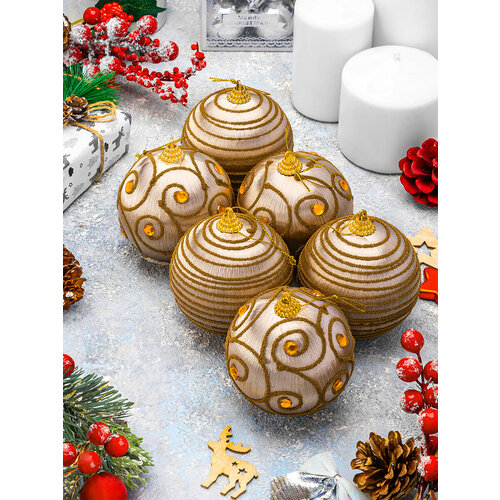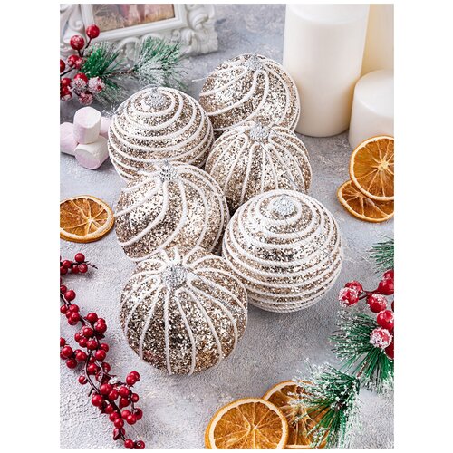 Набор 6 новогодних шаров 9,5х9,5 см Elan Gallery Полоски, шампань