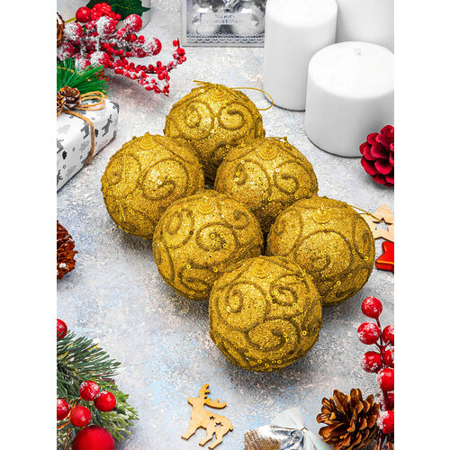 Набор 6 новогодних шаров 8х8 см Elan Gallery Вензеля, золото