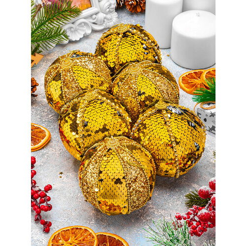 Набор 6 новогодних шаров 9,5х9,5 см Elan Gallery Золотые пайетки