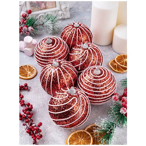 Набор 6 новогодних шаров 9,5х9,5 см Elan Gallery Полоски, красный