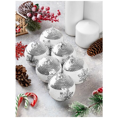 Набор 6 новогодних шаров 8х8 см Elan Gallery Снежинка