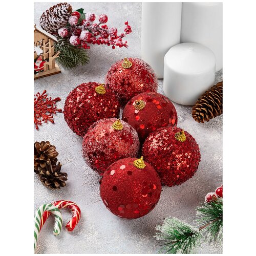 Набор 6 новогодних шаров 8х8 см Elan Gallery Красный