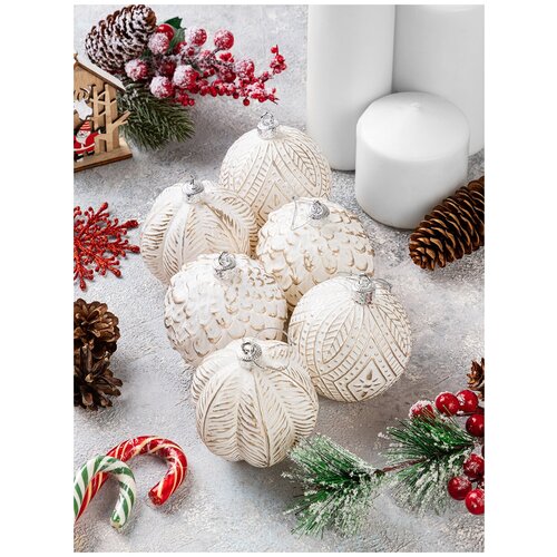 Набор 6 новогодних шаров 8х8 см Elan Gallery Винтажные узоры, шампань с эффектом старины
