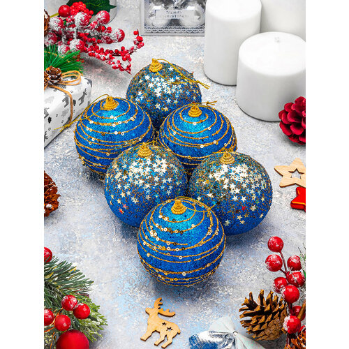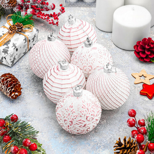 Набор из 6-ти новогодних шаров украсит елку и привнесет праздничную атмосферу! Шары подойдут для использования в роли елочного укра...