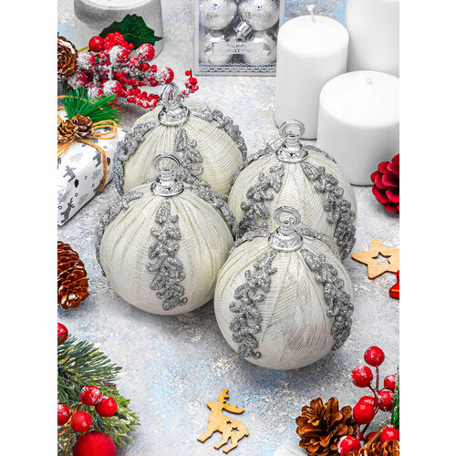 серебристый, белый, серебристыйНабор из 6-ти новогодних шаров украсит елку и привнесет праздничную атмосферу! Шары подойдут для использования в роли елочного украшения, интерьерного декора на стену, создания декоративных подвесных или настольных композиций. Еловые шарики мало весят: вы сможете подвесить их даже на самые высокие и тонкие веточки. Диаметр каждого шара 9,5 см. Имеется петля для подвешивания. Большие новогодние игрушки смогут стать настоящим украшением вашего дома и помогут ярко отпраздновать Новый Год или Рождество!
