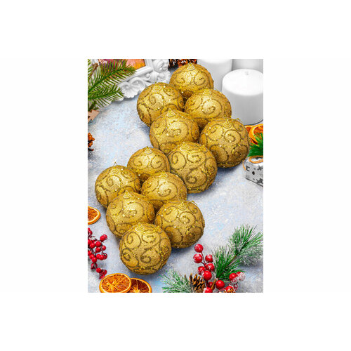 Набор 12 новогодних шаров Elan Gallery Вензеля 9,5х9,5 см (6 штук) и 8х8 см (6 штук), золото