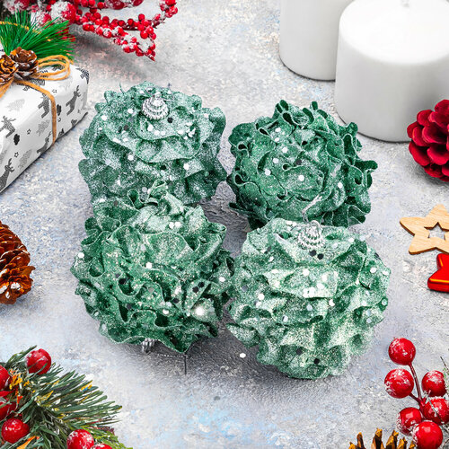 Набор 4-х новогодних елочных шаров 8х8 см Elan Gallery Шишка зелёная в серебре