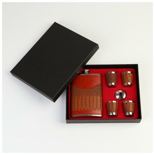 Цены на Набор 7 в 1: фляжка 8 oz, чешуя, 4 рюмки, воронка, шахматы, 18 х 24 см разноцветный в г. Пермь