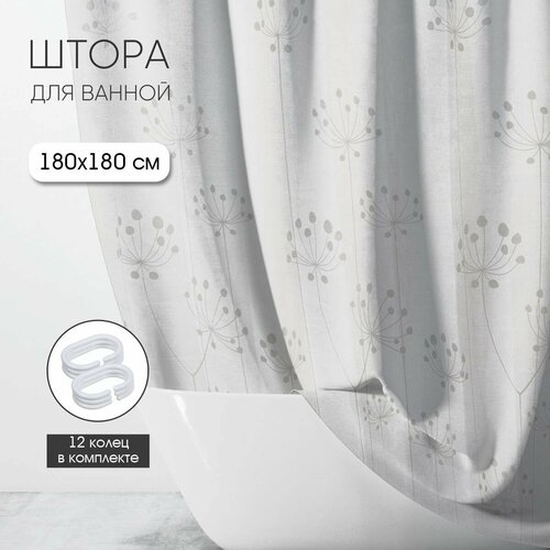 Штора для ванной комнаты 180х180 с кольцами PERFECTO LINEA Secret жемчужная (36-118006)