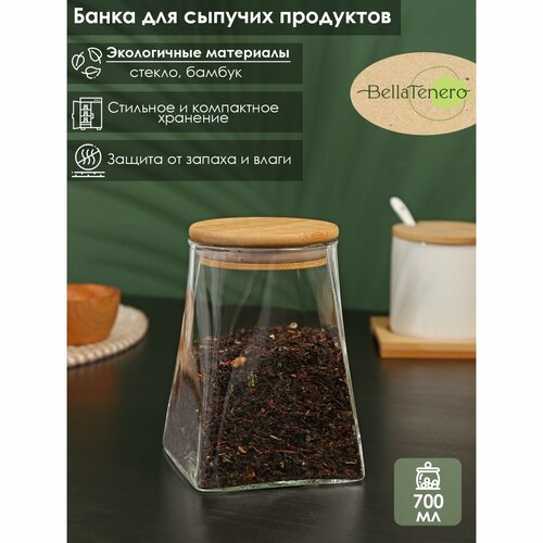 Банка стеклянная для сыпучих продуктов с бамбуковой крышкой BellaTenero «Эко. Трапеция», 700 мл, 9,5×13 см