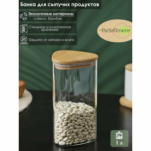 Банка стеклянная для сыпучих продуктов с бамбуковой крышкой BellaTenero «Эко. Треугольник», 1 л, 10×19 см